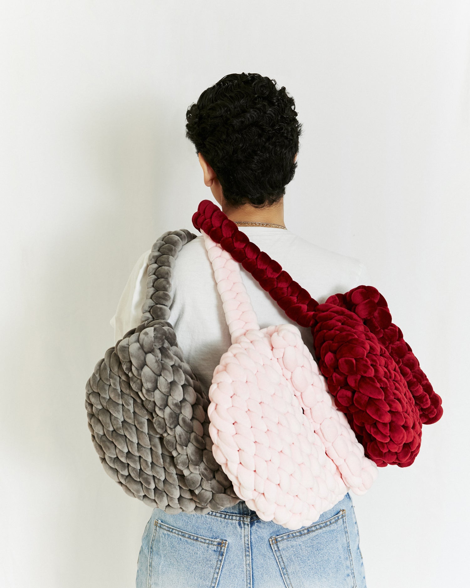 With this inverted crochet pattern, this shoulder bag is very tight-knit and provides a sturdy and secure feel.